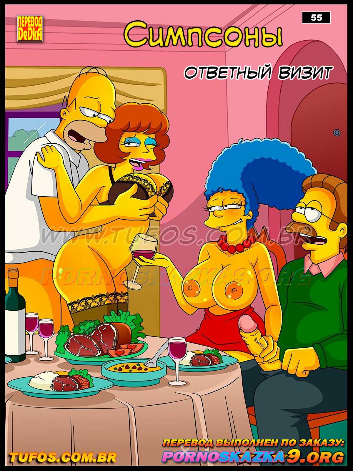 Порно комикс «Симпсоны. Часть 55. Ответный визит.» После ужина в доме Фландерсоф парочка Симпсонов хочет отплатить соседям за их...